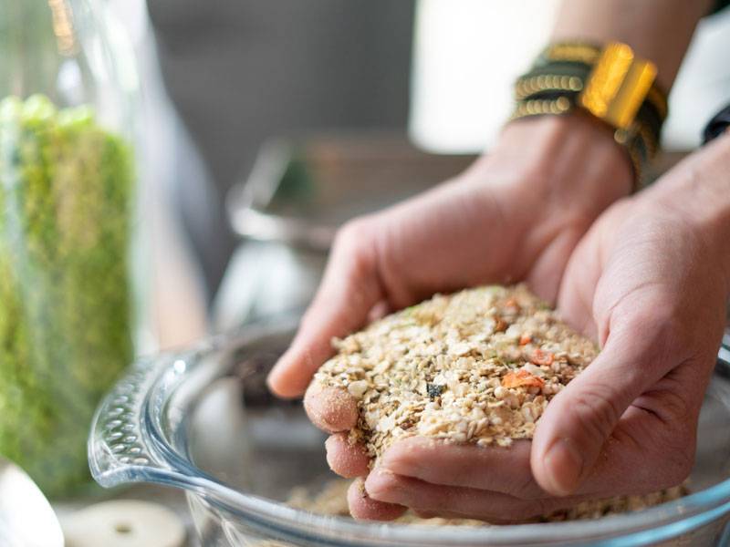 il est composé de riz, de colza, d’avoine, de billettes de riz-sarrasin, de graines de tournesol, de complexe minéro-vitaminé, de graines de lin ainsi que de carottes et courgettes déshydratées. Contrairement aux informations qui peuvent circuler, le chien digère parfaitement bien les céréales. D’ailleurs, elles sont bénéfiques pour son organisme puisqu’elles lui apportent l’énergie, rapidement disponible, sous forme d’amidon.